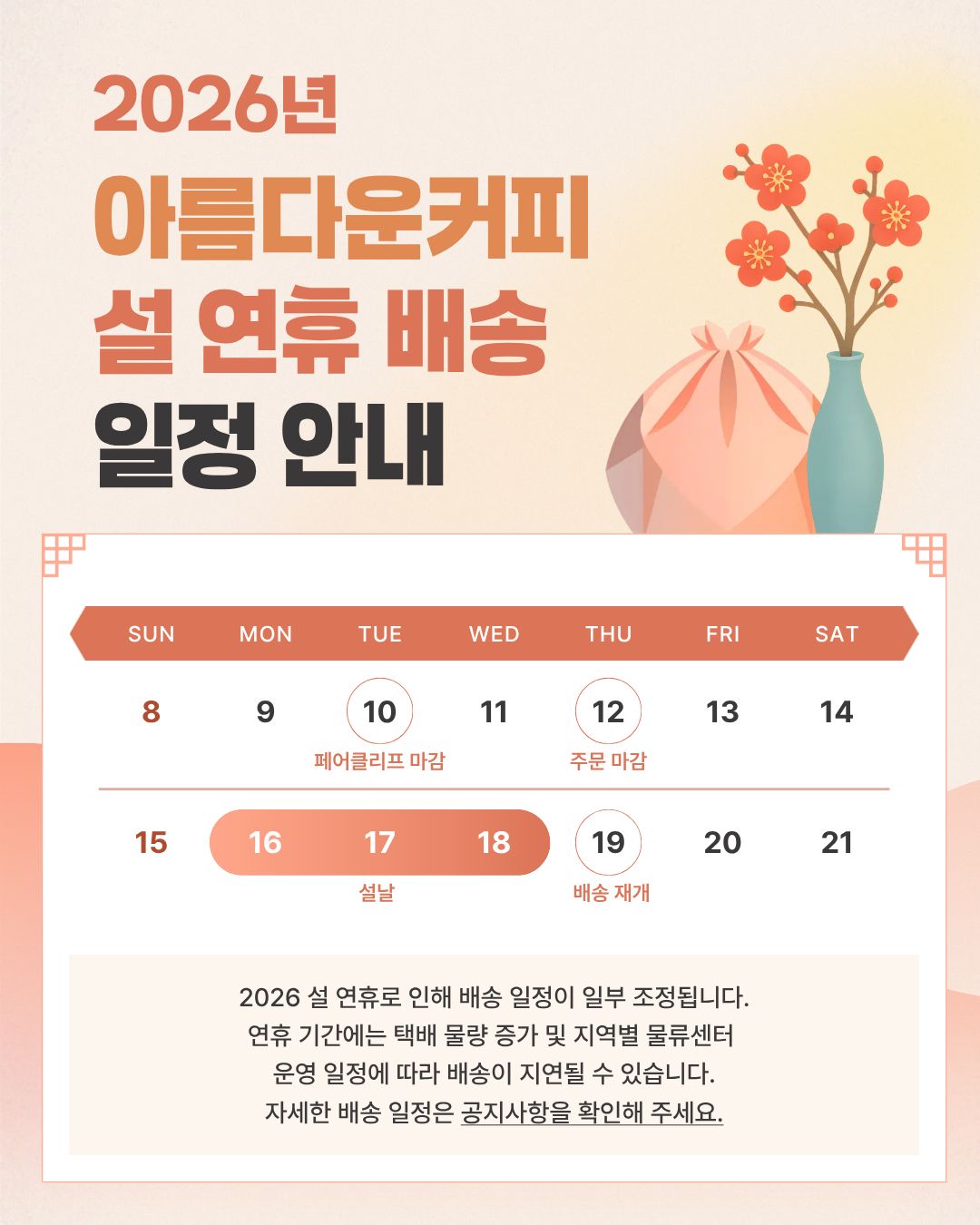 [°øÁö] 2026 ¼³³¯ ¹è¼Û/°í°´¼¾ÅÍ ÈÞ¹« ¾È³»